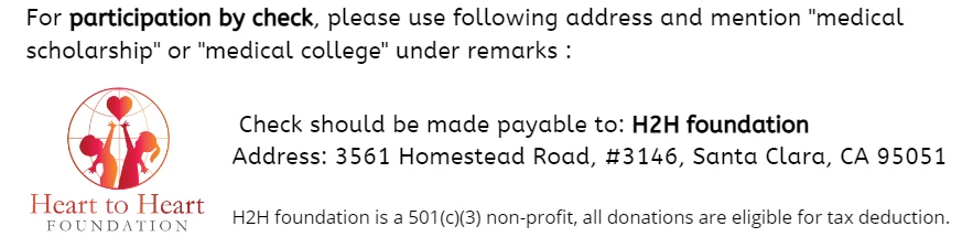 H2H foundation is based in Santa Clara, CA. All donations are tax deductible in the US since H2H is an approved charity under 501 c (3) of IRS.